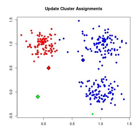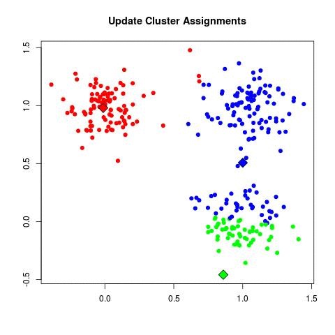 | - Assign x_i to the cluster C_k where k = argmin_j ||x_i - μ_j||^2.