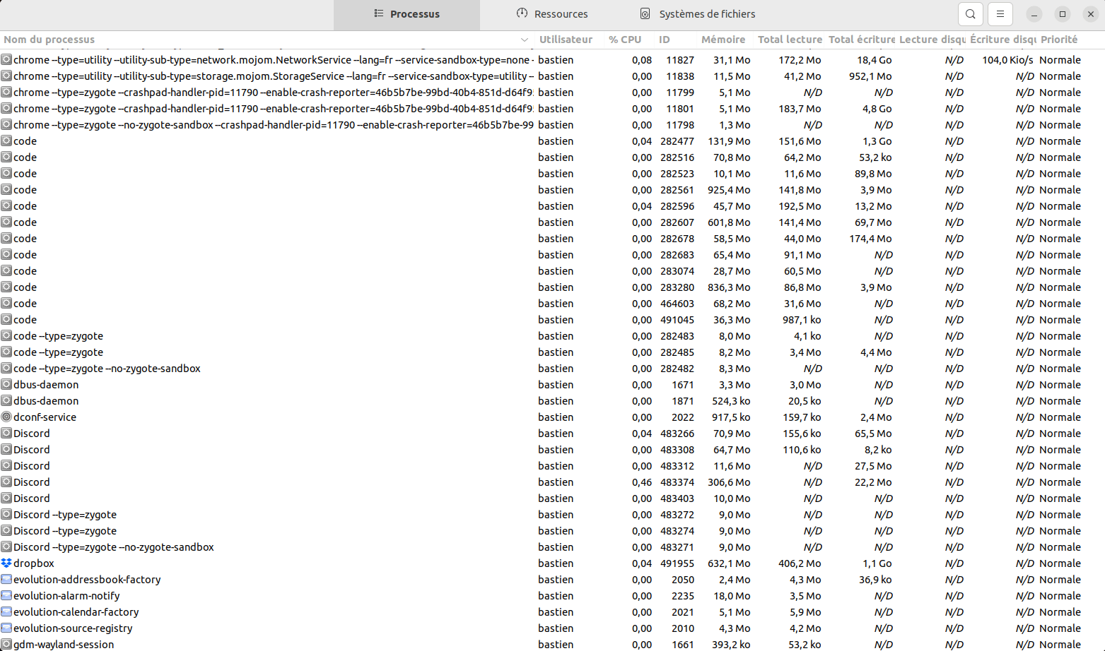 On MacOS, the Activity Monitor (or Moniteur d'activité) can also display CPU usage, Memory usage and Disk usage.