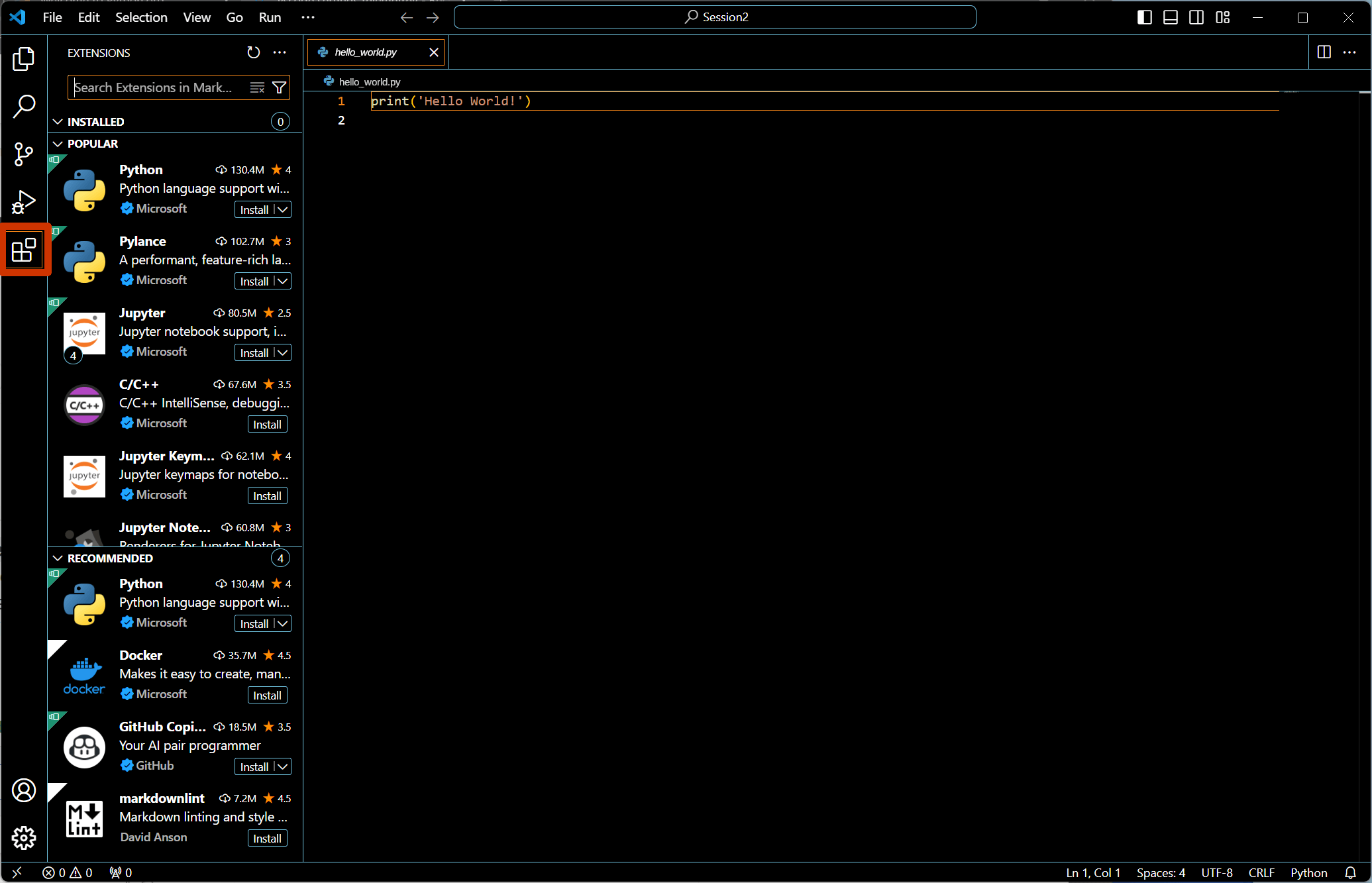 As you may have guessed, VSCode has many useful extensions, for a lot of different purposes. Please install the following extensions, using the same procedure as earlier: