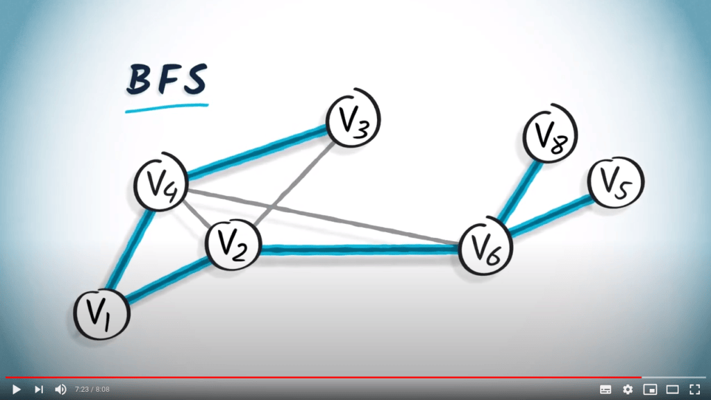 The other approach I will describe here is the breadth-first search. When using a breadth-first search, or BFS, we explore the graph by gradually increasing the number of hops from the initial vertex.