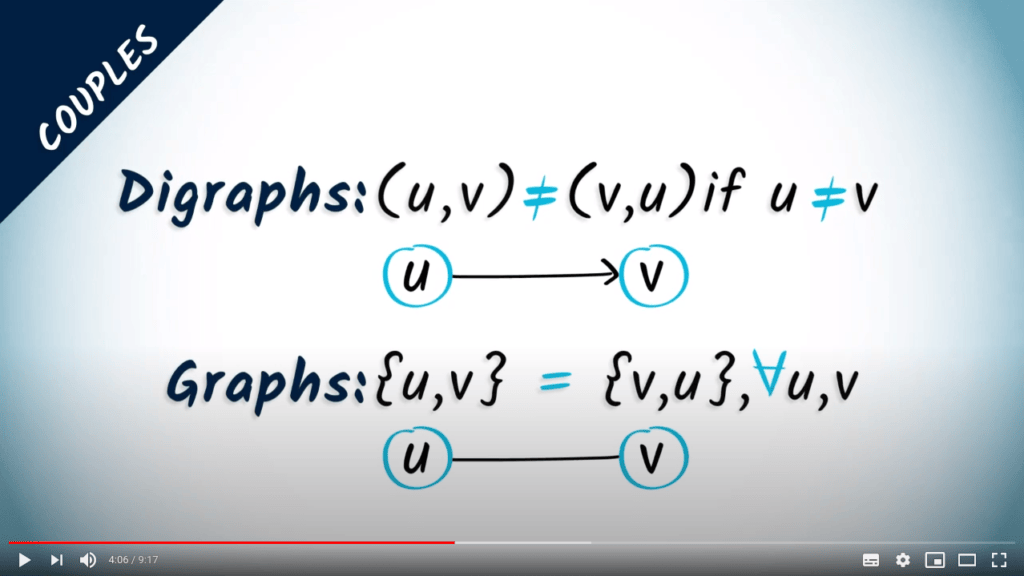In some cases, edges can be directed, which means that a vertex $u$ can be connected to a vertex $v$, even if $v$ is not connected to $u$.