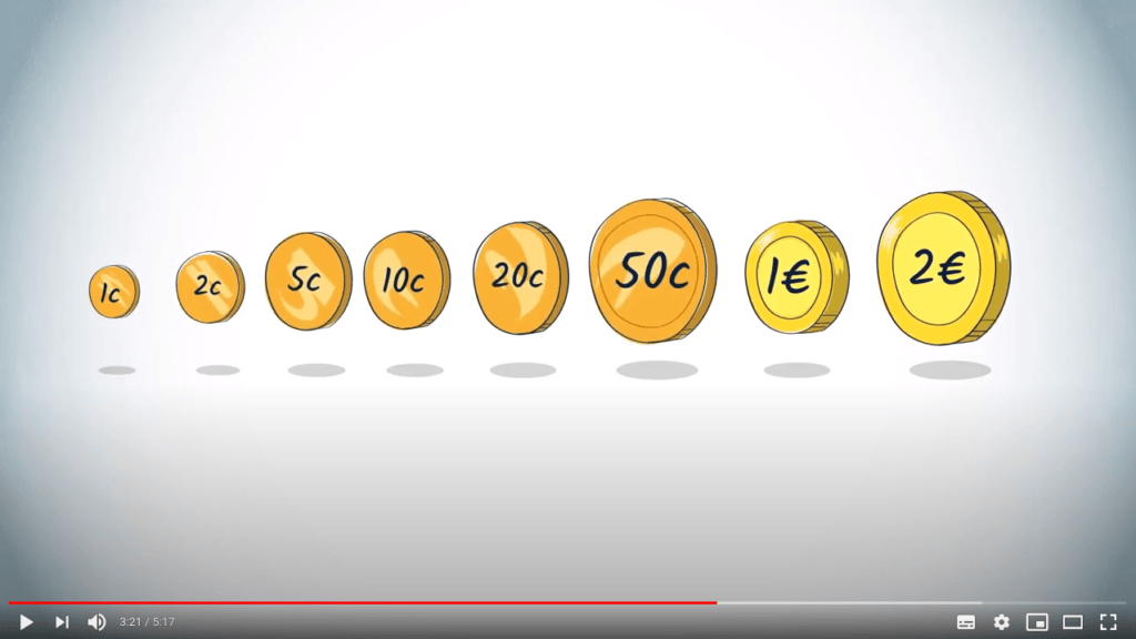 We wish to return a certain amount of change in euros, and we've got the following pieces: 1c, 2c, 5c, 10c, 20c, 50c, 1€, 2€.