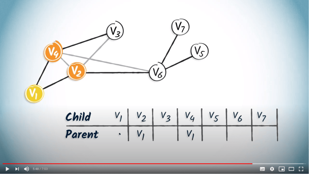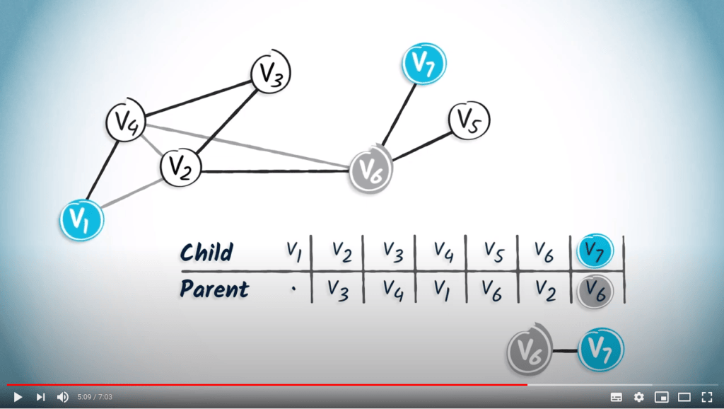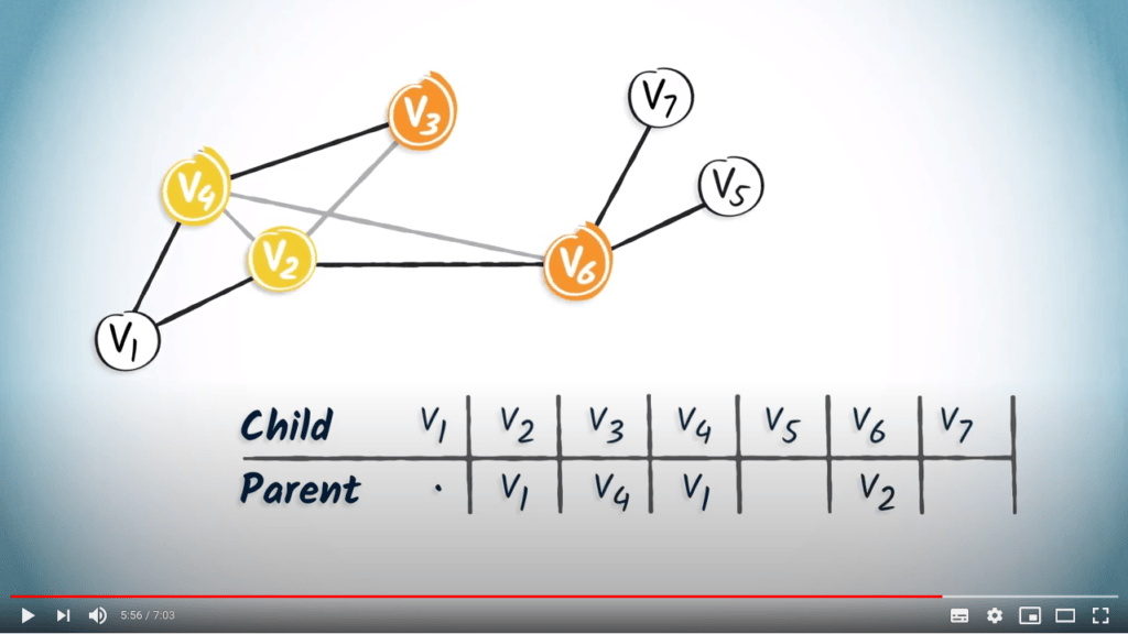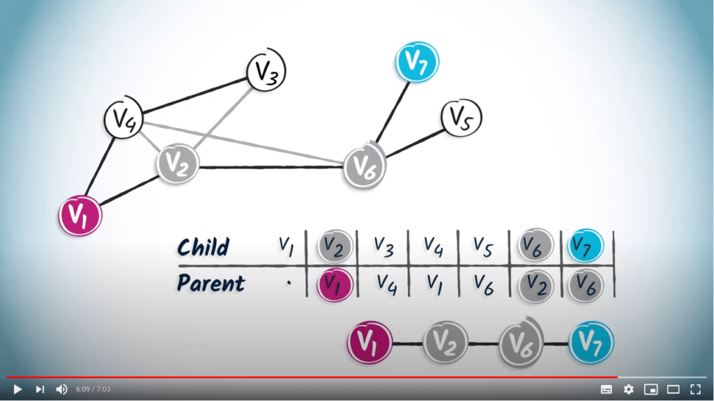 To read this table, you can simply start from the desired destination and read the corresponding entry, which refers to the parent vertex of the destination.