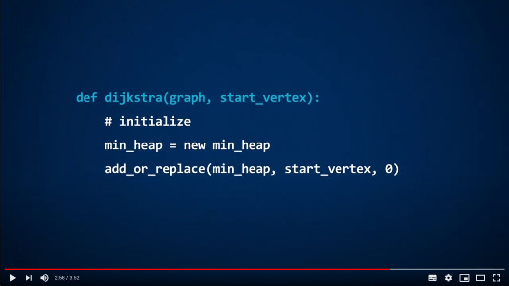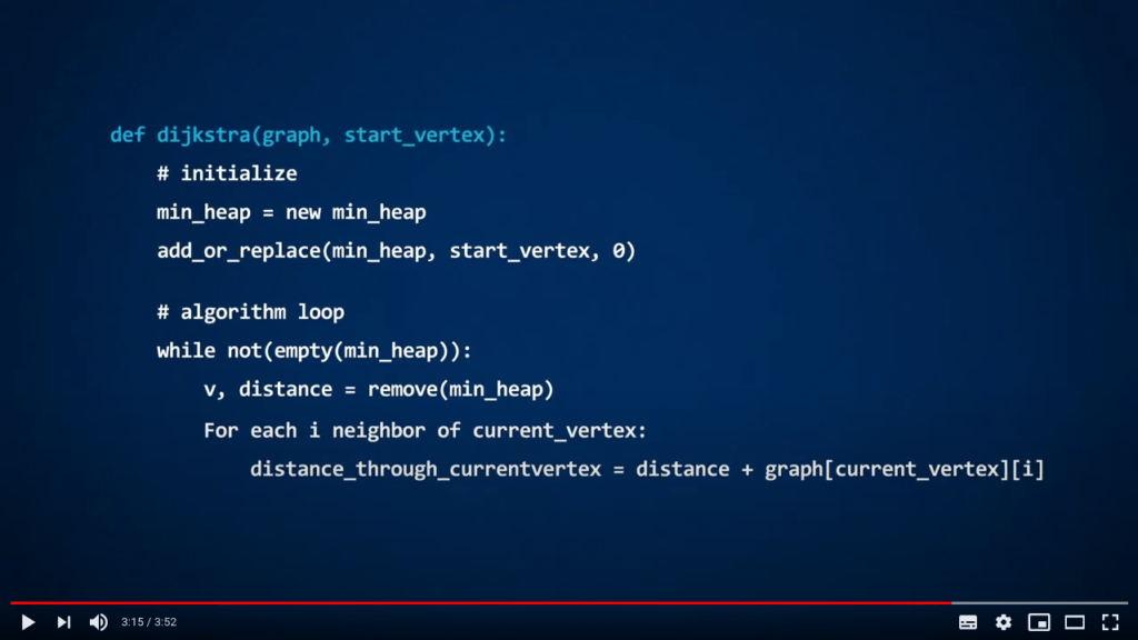 In the video, you are presented a possible implementation of Dijkstra’s algorithm, that uses a function called