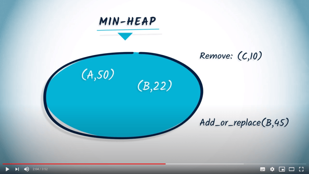 # If the key is already in the heap, we remove the previous element if the new value is lower