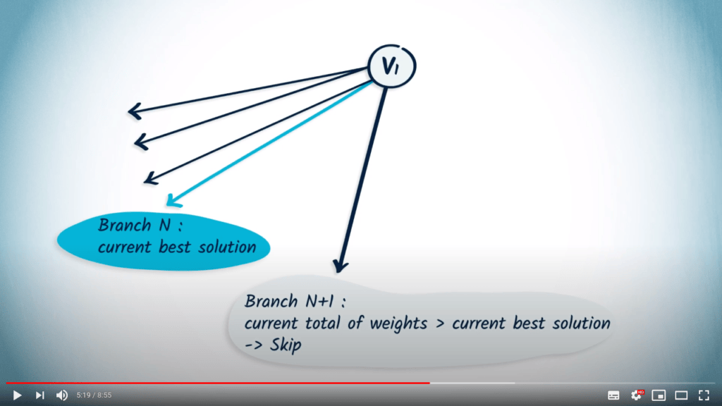The branch-and-bound algorithm explores the tree of possibilities (in the case of the traveling salesman, the tree of possible paths). To do this, it uses a BFS-like algorithm. At each vertex it encounters, it tries to estimate an interval (as narrow as possible) estimating the length of a shorter path obtained from the branch of the tree where it currently is.