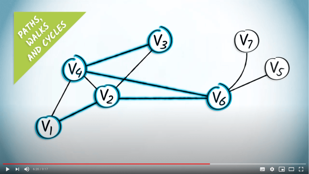 A walk is a sequence of vertices, such that any two consecutive vertices form an edge in the graph.