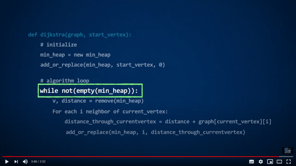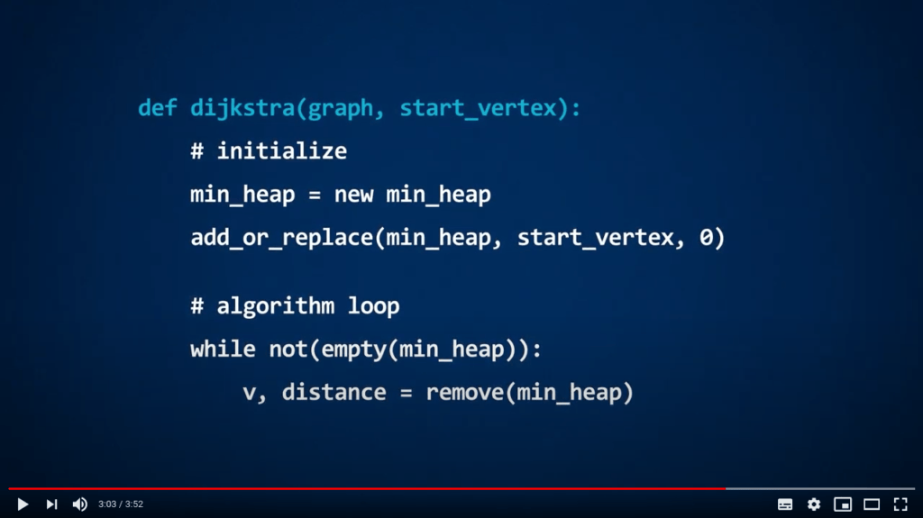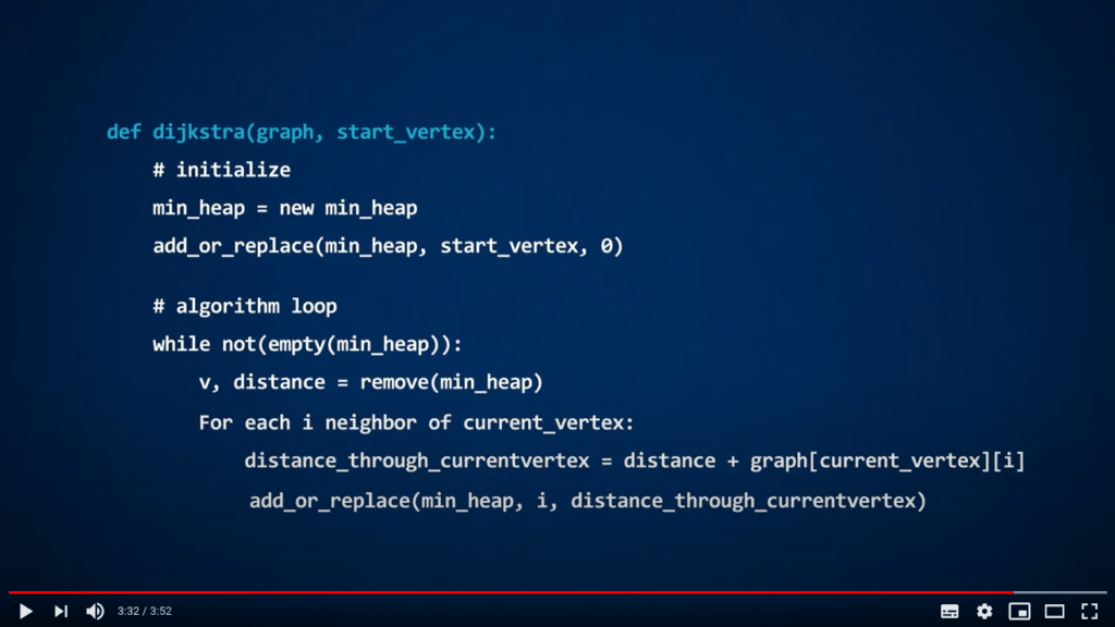 In the video, you are presented a possible implementation of Dijkstra’s algorithm, that uses a function called
