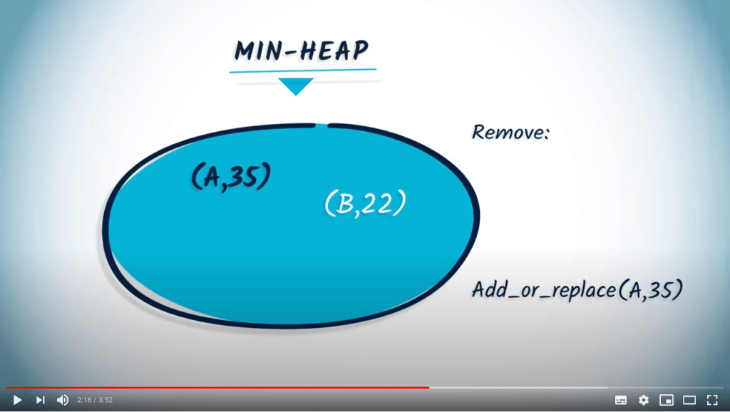 # If the key is already in the heap, we remove the previous element if the new value is lower