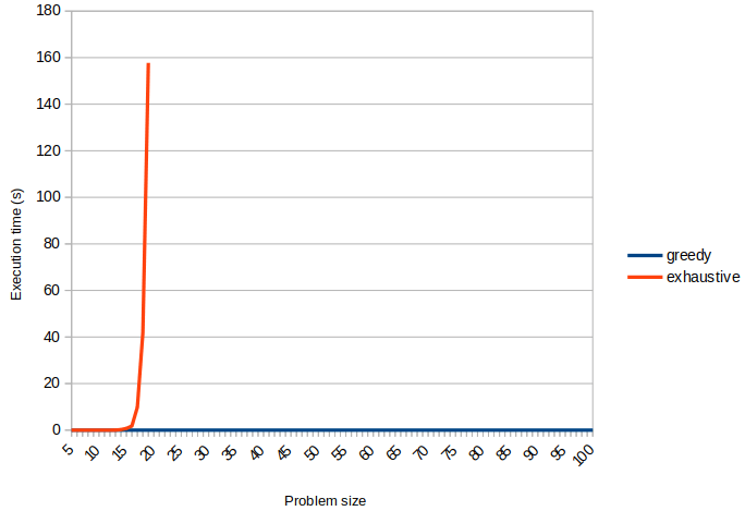 print(NB_NODES, ";", average_time, ";", average_solution_length)Similarly, the following program measure_exhaustive.py evaluates the exhaustive solution: